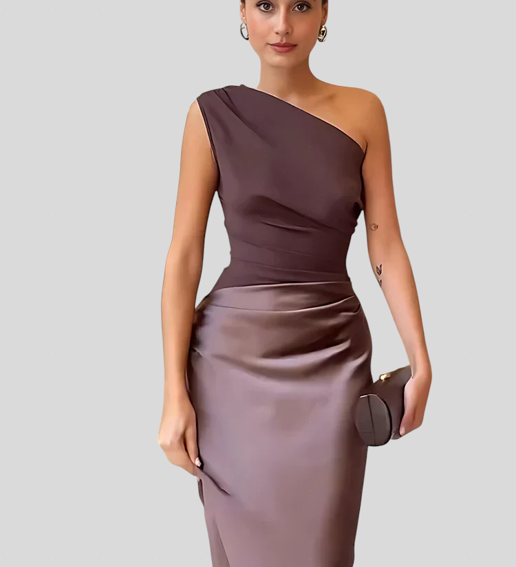 Amber – Saten Haljina Na Jedno Rame, Maxi Duljine