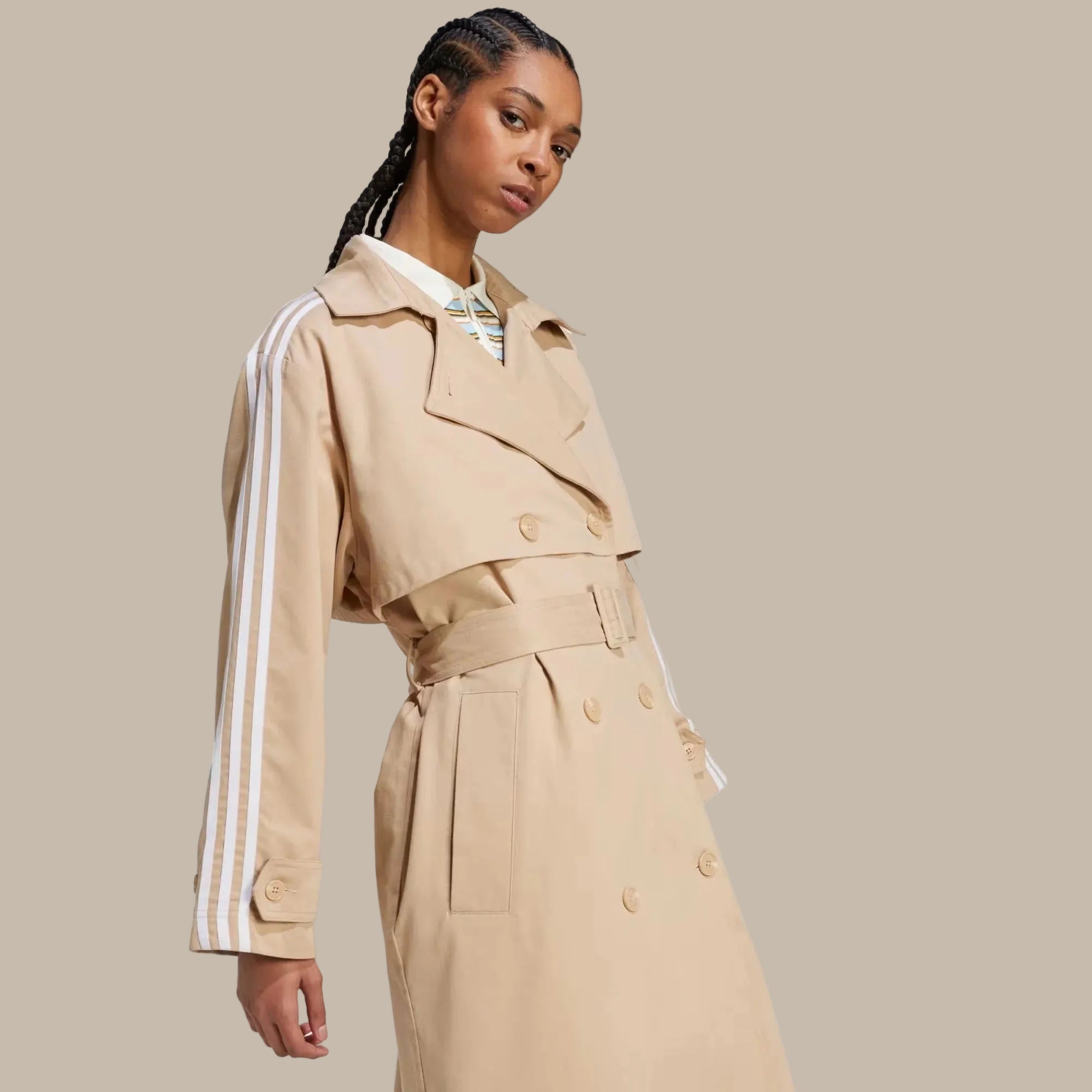 Klasični bež midi trenčk s elegantnim i bezvremenskim krojom. Ima široki rever, dvoredni zatvarač i podesiv pojas koji naglašava siluetu. Strukturirani dizajn uravnotežen je fluidnim padom, što ga čini savršenim za slojevito oblačenje – od ležernih kombinacija s tenisicama do profinjenijih odjevnih cjelina. Svestrano komad koji svakoj odjevnoj kombinaciji daje moderan i profinjen dodir.