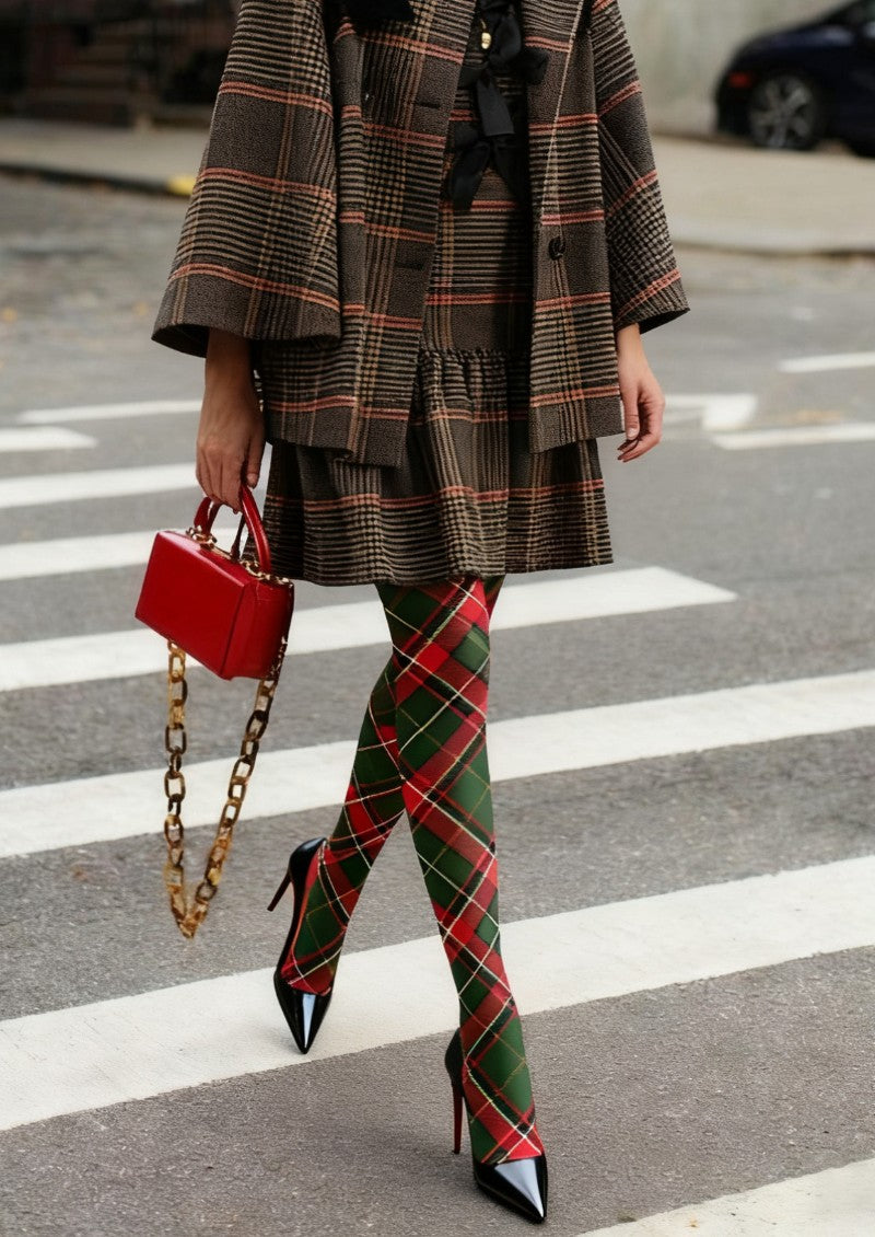 Viken Plan Božićni Smaragdni Tartan Chic Čarape Tajice