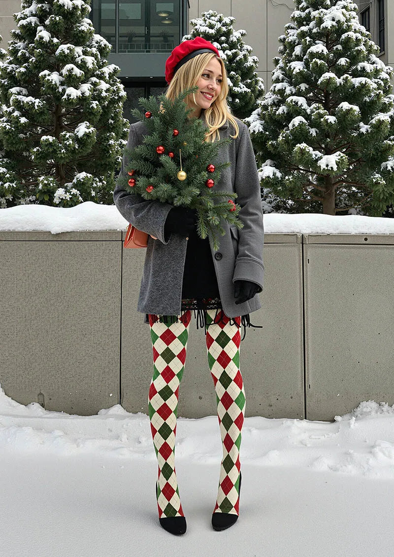 Viken Plan Božićna Zabavna Umjetnost Zimska Berries Karirane Čarape Tajice