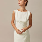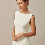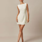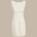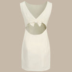 Ova mini haljina s izrezom je zapanjujuća i elegantna haljina koja je savršena za svaku priliku. Brodasti vrat, bez rukava i dizajn s izrezom na leđima dodaju dašak sofisticiranosti haljini, dok dizajn s mašnom na leđima dodaje jedinstven i upadljiv element. Prirodno strukirana i uska kroja čine je udobnom i lako nosivom, dok također stvara laskavu siluetu koja ističe figuru.