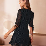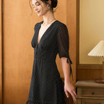 Crna Mini Haljina s Dubokim V-Izrezom i Točkicama