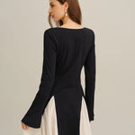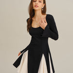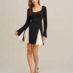 Crna mini haljina s kontrastnim zvonastim rukavima