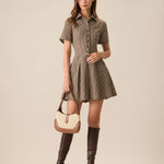 Kratka haljina s plavim uzorkom i nabranim detaljima