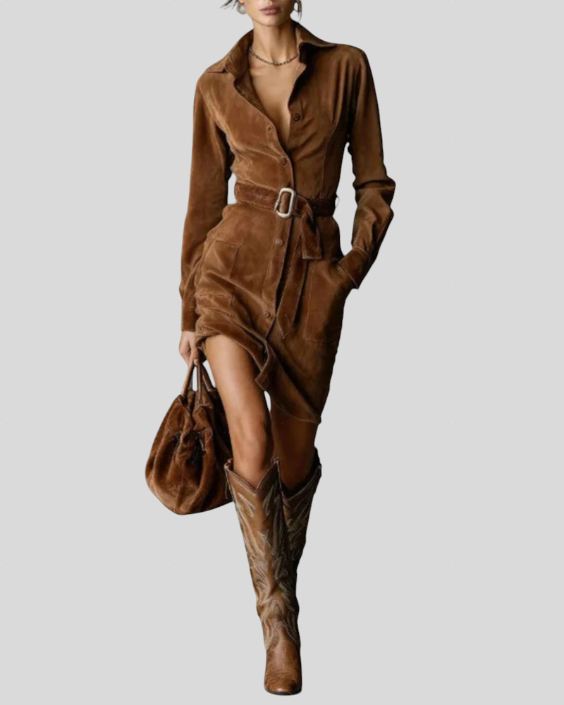 Baršunasta Midi Haljina s Remenom Sofisticiranog Stila