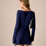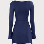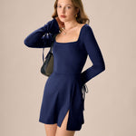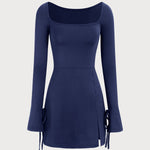 Mornarska A-linija Mini Haljina s Kvadratnim Izrezom