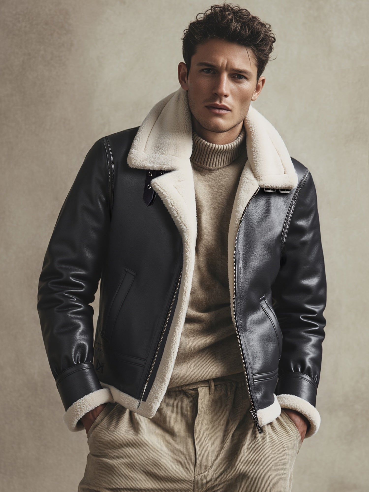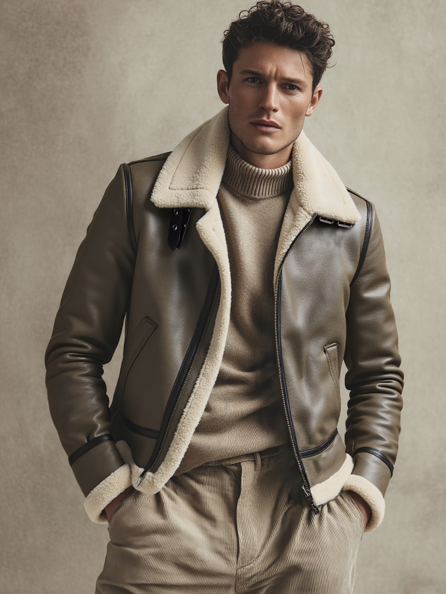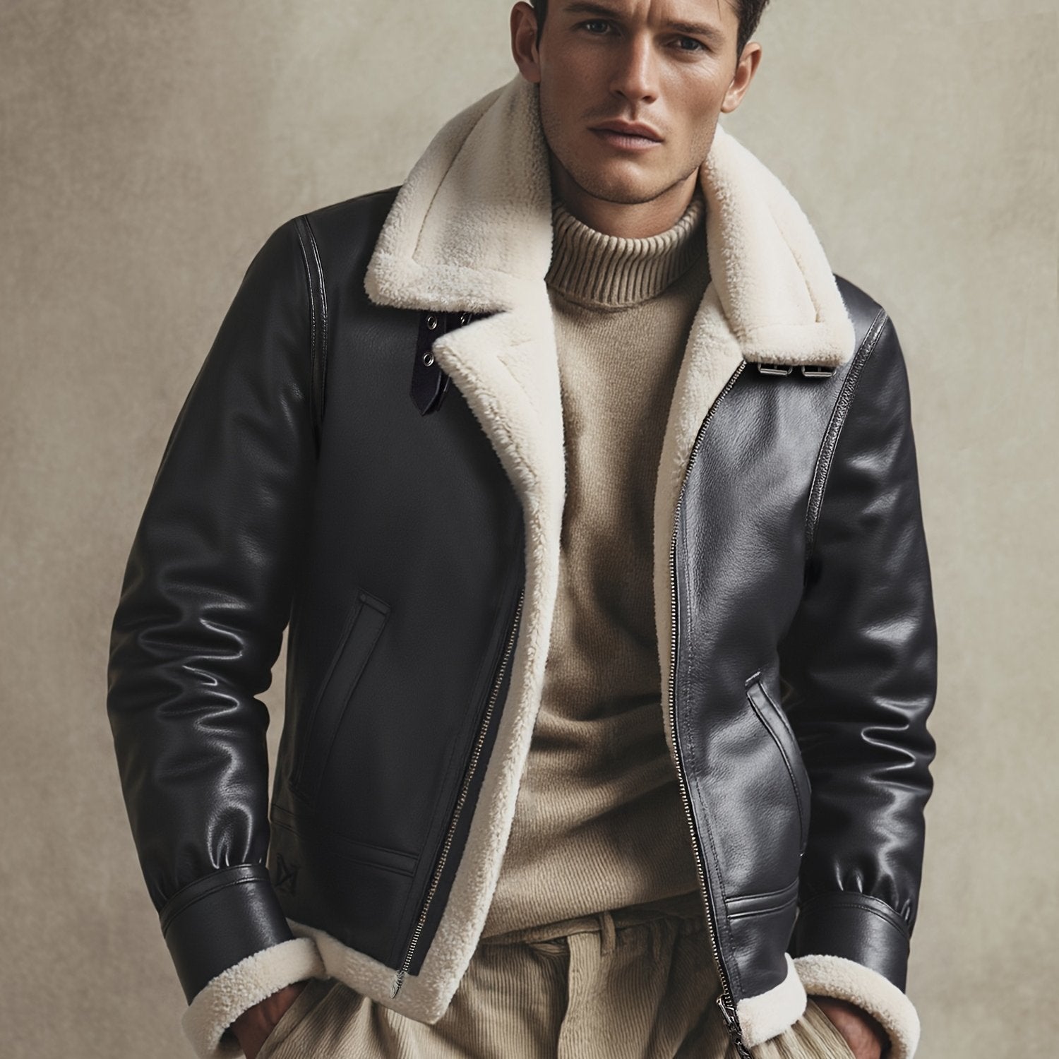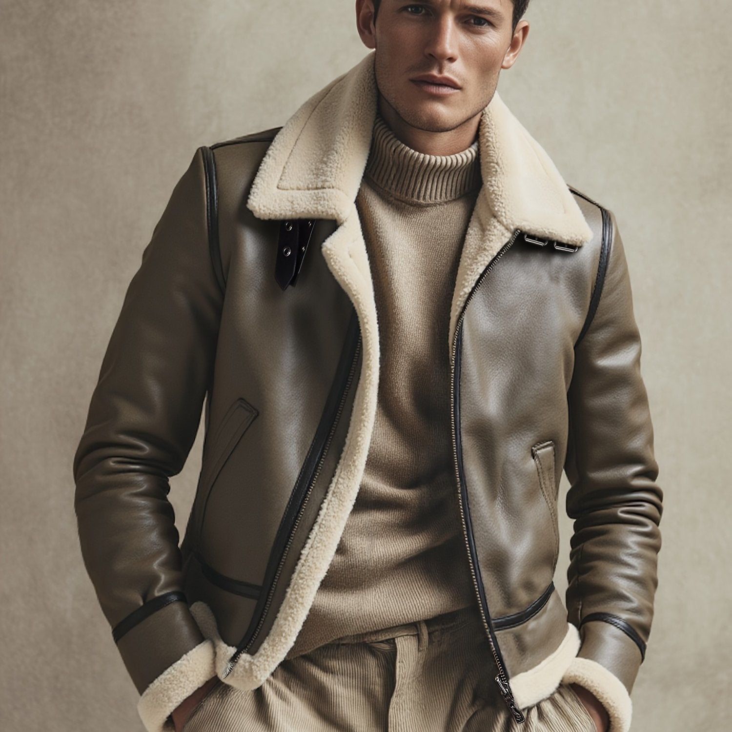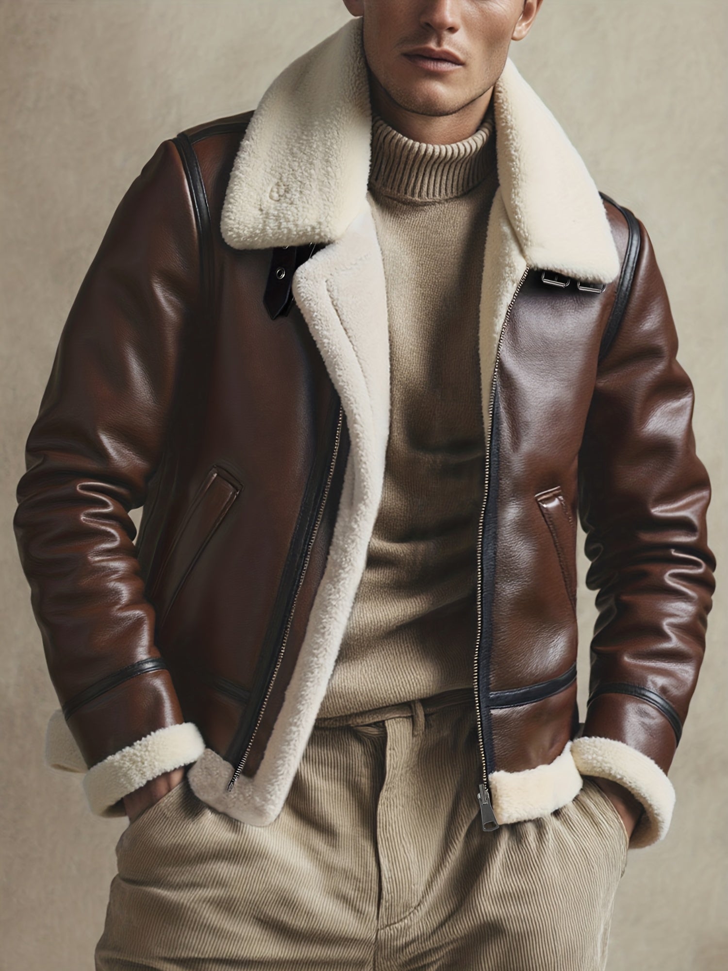 ✓ Ikoničan stil – Preuređena estetika vozača, duboka smeđa koža i kontrastni ovratnik za premium izgled.
