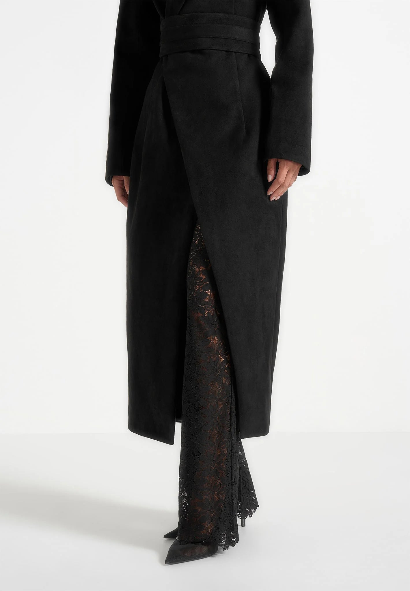 Esma - Suede asimetrični kaput s remenom - Smeđa