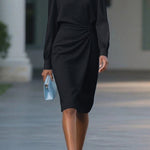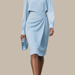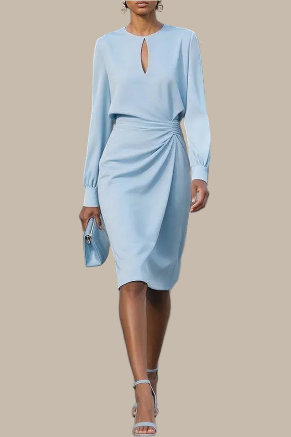Haljina midi dugih rukava s okruglim izrezom u jednobojnoj boji