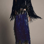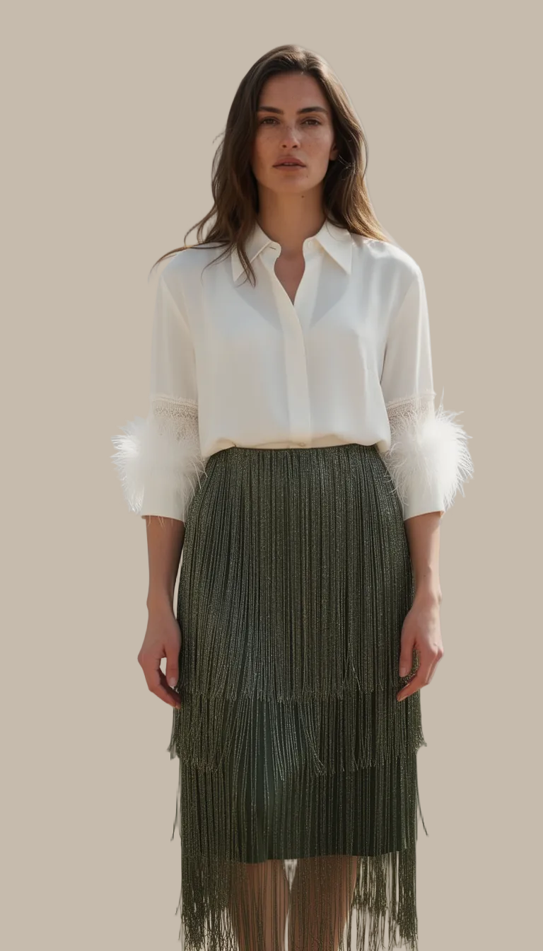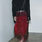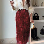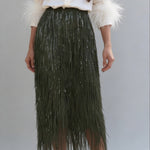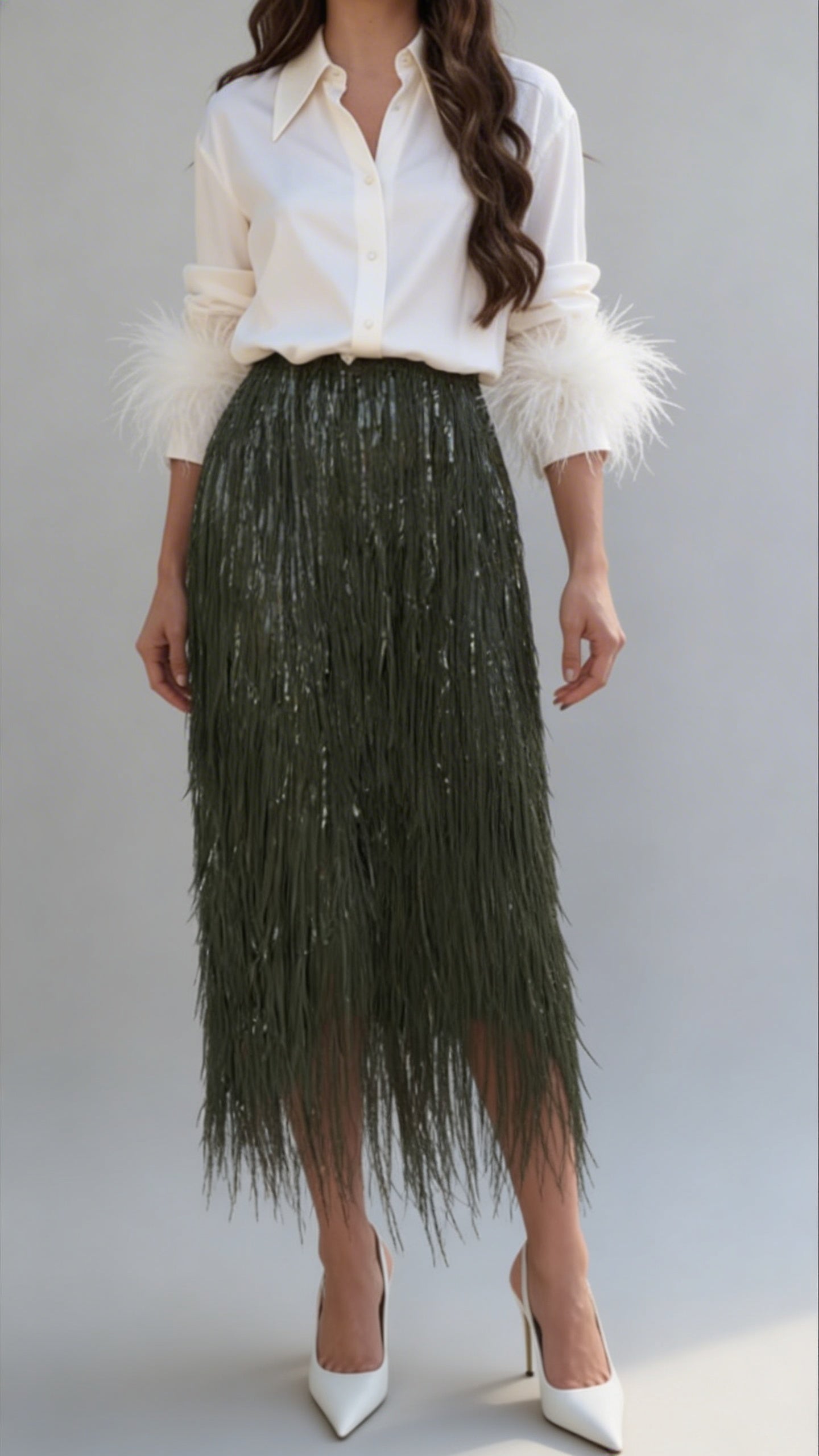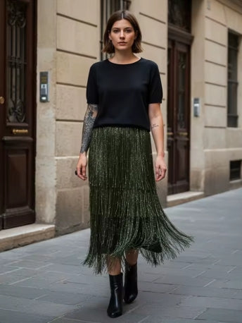Suknja Midi s Visokim Strukom i Šljokicama s Resicama