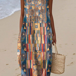 Ženska apstraktna geometrijska uzorka umjetnička print haljina bez rukava s džepovima