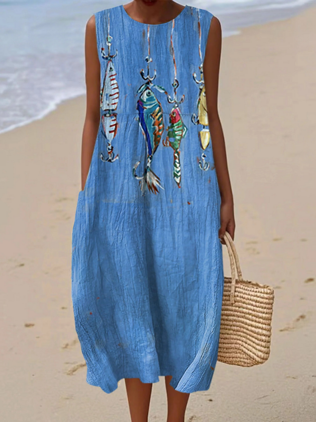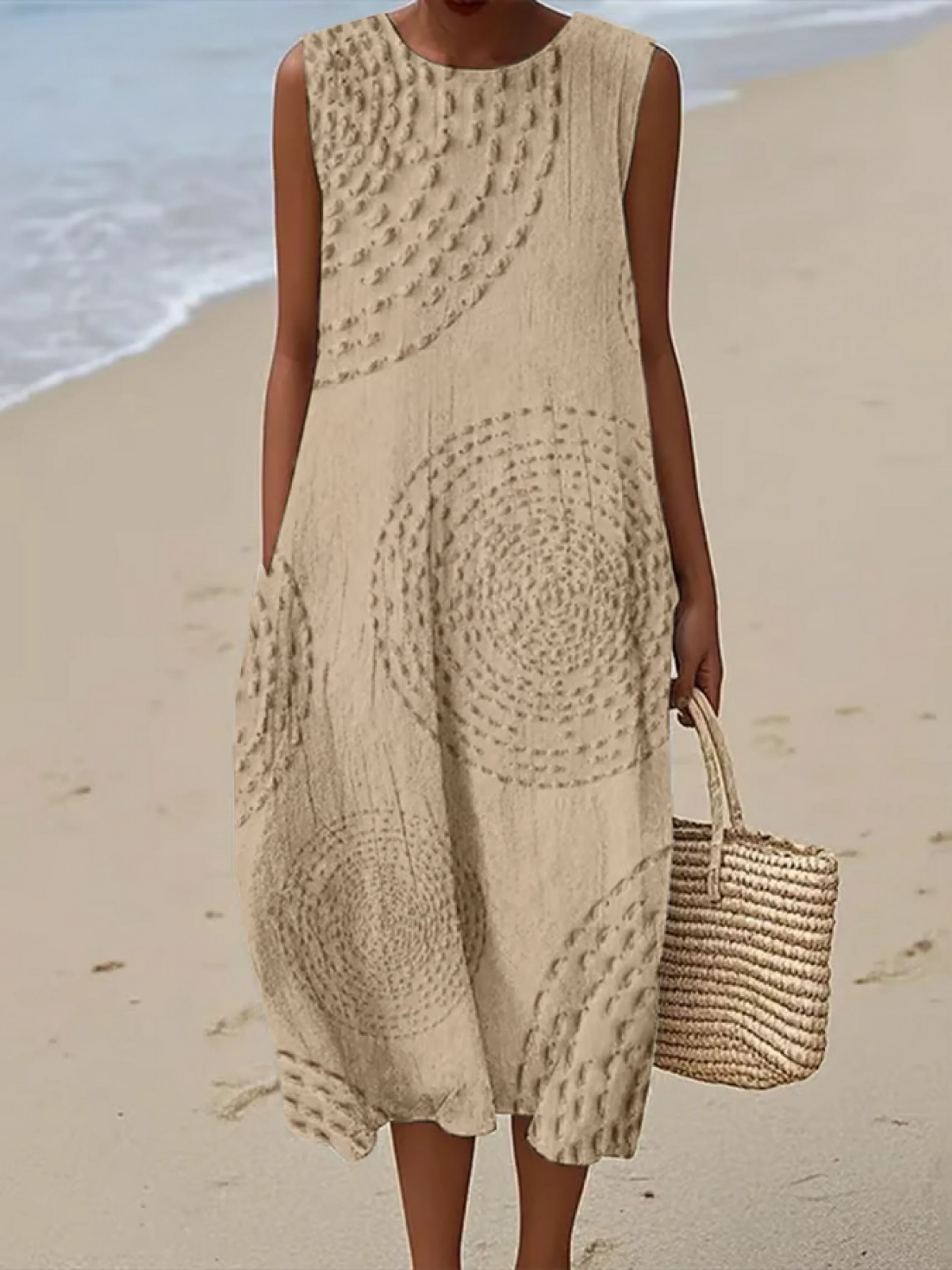 Ženska haljina bez rukava s apstraktnim uzorkom i džepovima