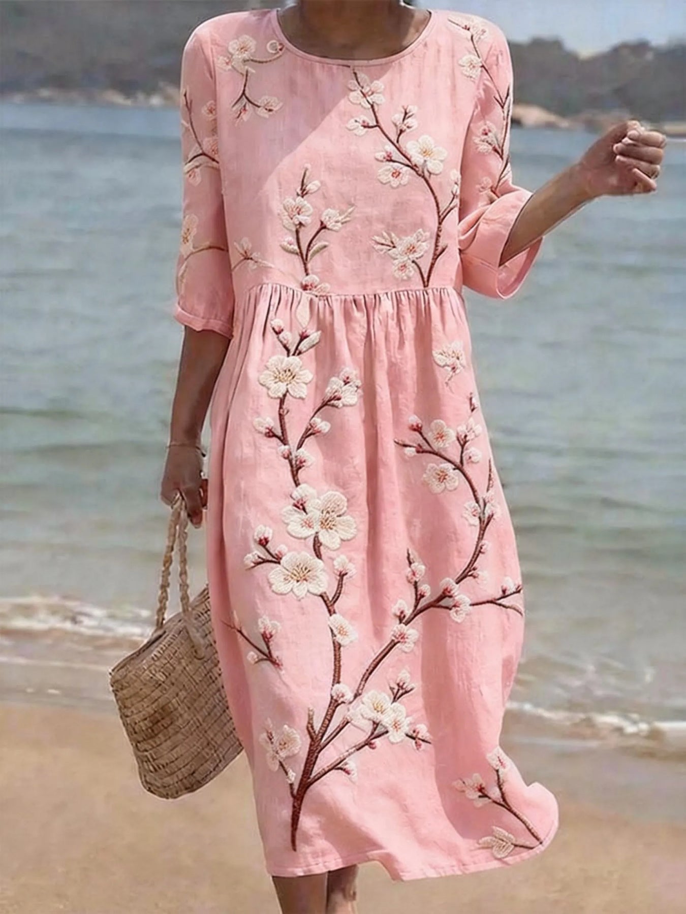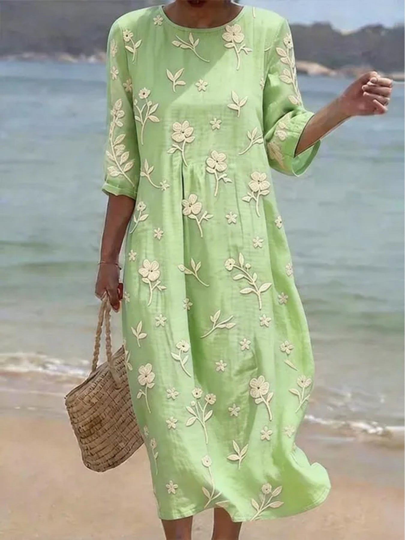 Christina - Haljina maxi s cvjetnim uzorkom i okruglim izrezom
