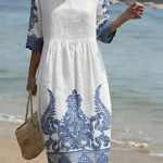 Ova haljina srednje dužine nudi jednostavan, graciozan stil—savršena za proljeće i ljeto. Ugodna i laskava, idealna je za ležerne šetnje, vikend izlete, putovanja ili opuštena druženja s prijateljima.