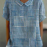 Amelia | Prugasta Patchwork Košulja donosi bezbrižne stilizirane vibracije s svojim chic plavim i bijelim prugastim patchworkom, stvarajući moderan i svjež izgled. Zamislite šetnju kroz obalni grad, blagi povjetarac igra s vašom kosom, a svježe oceanske nijanse odražavaju se na vašoj košulji. Ova košulja bit će vaš omiljeni izbor za opušten, ali sofisticiran izgled koji se savršeno uklapa s trapericama ili lanenim hlačama.