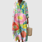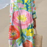 Chloe Blossom haljina je razigrani i elegantni komad koji donosi ljepotu cvjetanja cvijeća u vašu garderobu. Vibrantni cvjetni uzorak, s njegovim odvažnim bojama i mekanim materijalom, stvara lepršavu, opuštenu siluetu koja laskava svakoj tjelesnoj formi. V-izrez i dugi rukavi dodaju dašak sofisticiranosti ležernom dizajnu, čineći je savršenom za sunčane dane ili opuštene izlaske.