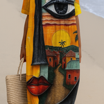 Nova Glow Haljina donosi suvremenu umjetnost u modu sa svojim upečatljivim apstraktnim uzorkom. S odvažnim, živopisnim bojama i privlačnim motivom lica i pejzaža, ova haljina čini jedinstvenu izjavu dok održava udoban, opušten kroj. Mekani materijal lijepo pada preko tijela, omogućujući slobodu kretanja, dok živopisan uzorak dodaje razigrani, umjetnički dodir.