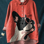 Evie - Dekorativni uzorak francuskog buldoga s naočalama na crvenoj pozadini ležerna košulja
