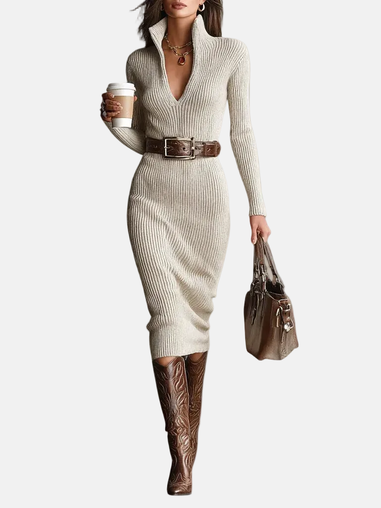 Edita – Pletena Haljina Sa Srednje Visokim Ovratnikom I Remenom