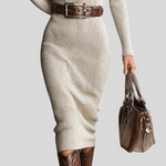 Ova pletena haljina savršen je spoj sofisticiranosti i udobnosti u jednom modelu. Sa srednje visokim ovratnikom, elegantnim izrezom i remenom koji naglašava struk, stvara ženstvenu, modernu i izuzetno profinjenu siluetu. Materijal se nježno prilagođava tijelu, pružajući potpunu udobnost tijekom cijelog dana. Idealna je za urbani chic stil, posebne susrete ili prilike u kojima želite zablistati s elegancijom.