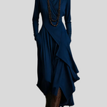 Ova maxi haljina stvorena je za žene koje žele spoj elegancije, osobnog stila i udobnosti. Asimetrični kroj stvara poseban, fluidan izgled, dok visoki ovratnik vizualno izdužuje figuru i daje dozu profinjenosti. Mekana tkanina lagano prati tijelo pri svakom koraku, naglašavajući ženstvenost i originalnost. Savršen izbor za sve koji vole odjeću s umjetničkim štihom.