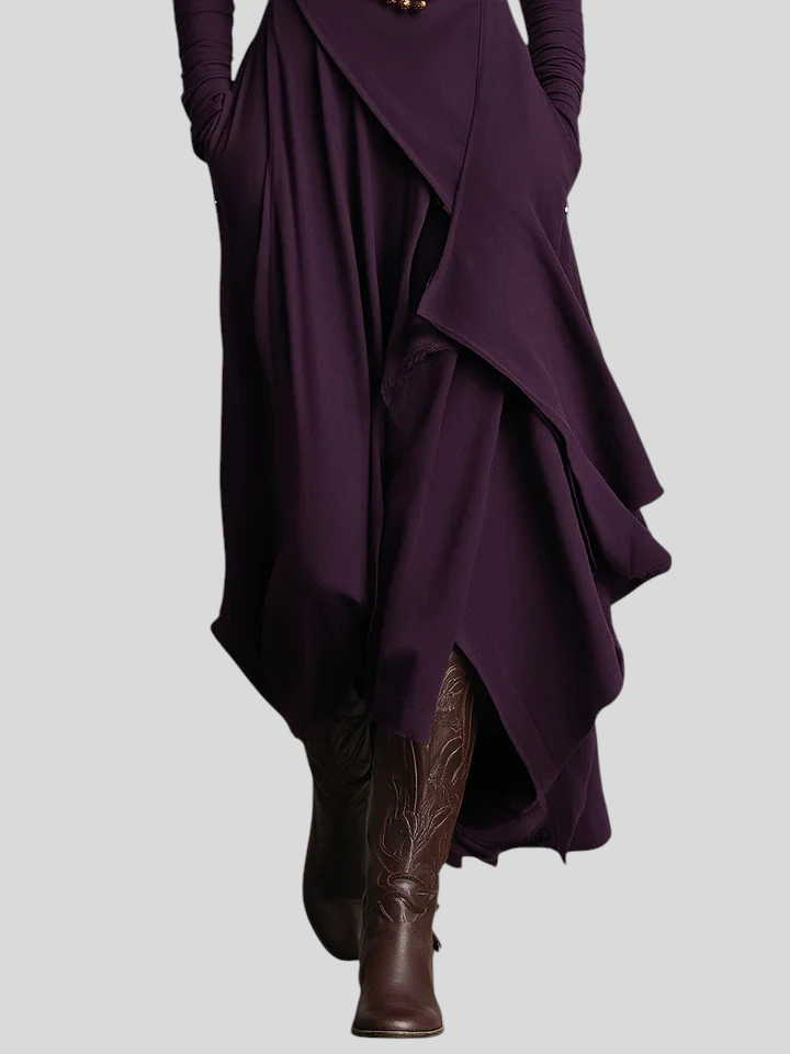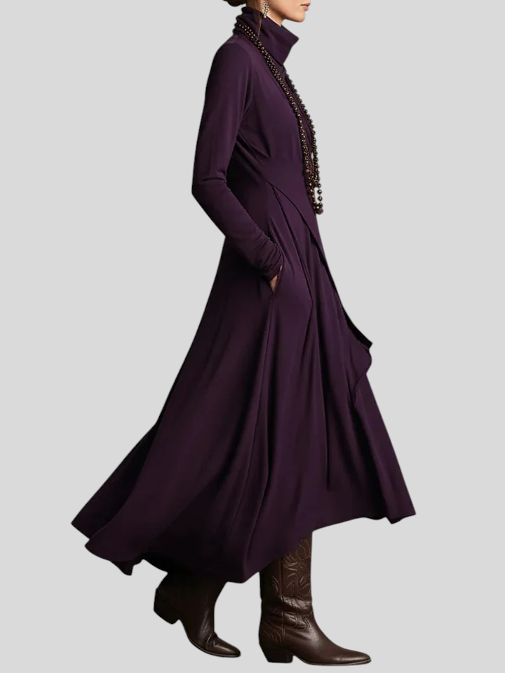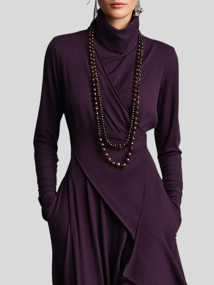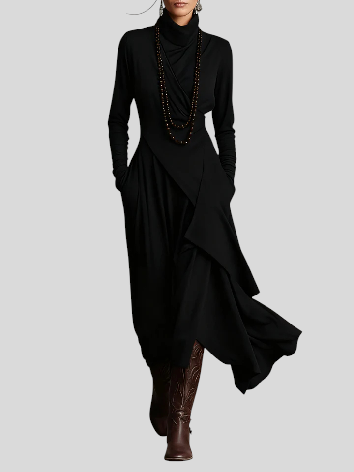 Asimetrična Maxi Haljina S Visokim Ovratnikom I Elegantnim Pokretom