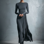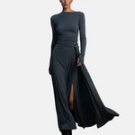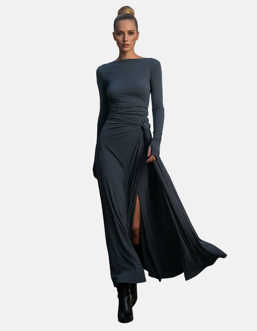 Ova Milica Maxi Haljina s Ombrom kombinira udobnost, rastezljivost i sofisticiranost. Izrađena od mekog prozračnog materijala s chic čvorom, stvara elegantan izgled savršen za formalne događaje, večernje izlaske ili svaki trenutak kada želite rafiniranu jednostavnost.